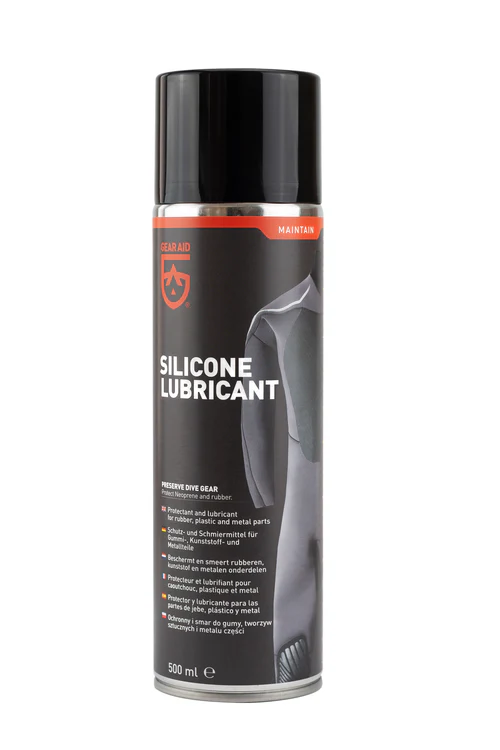 Slide easily in and out of your wetsuit with Silicone Lubricant spray, which also protects gear from the harmful effects of saltwater. The food-grade silicone formula preserves rubber gaskets and neoprene, to make expensive dive gear last longer. Lubricate sensitive rubber parts and protect neoprene dive equipment from salt, corrosion and oxidation, with the Silicone Lubricant Spray by GEAR AID.