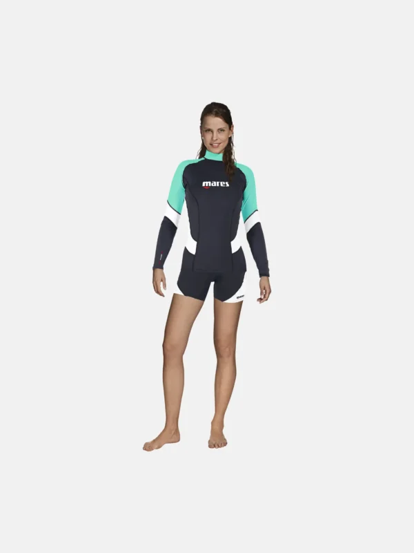 Women’s She Dives long-sleeved rash guard with UPF 50+ protection. Can be used for water sports. Made of a lightweight, quick-drying and comfortable material.